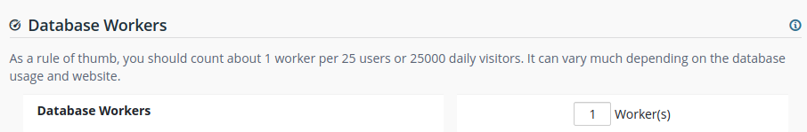 Additional database workers can be configured here. More workers help increase the load your production database is able to handle. If you add more, it will automatically be synchronized with your subscription.