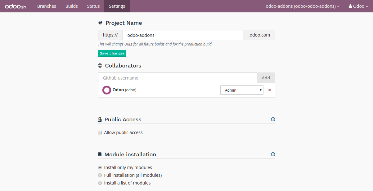 - Admin: has access to all features of Odoo.sh.